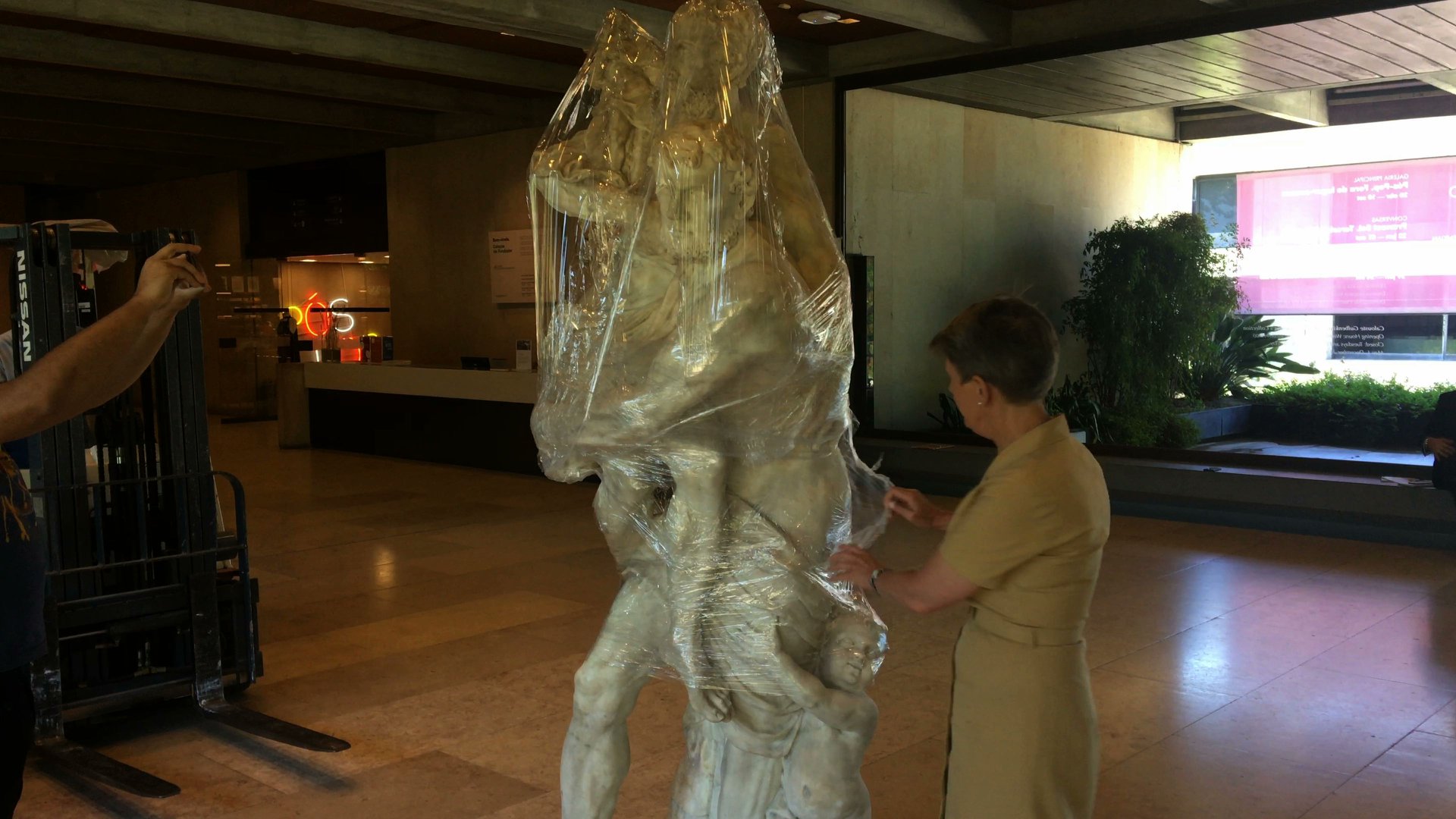 "Eneias transportando o seu pai Anquises" uma escultura do séc.XVII, é colocada no hall da Coleção do Fundador no Museu Gulbenkian.